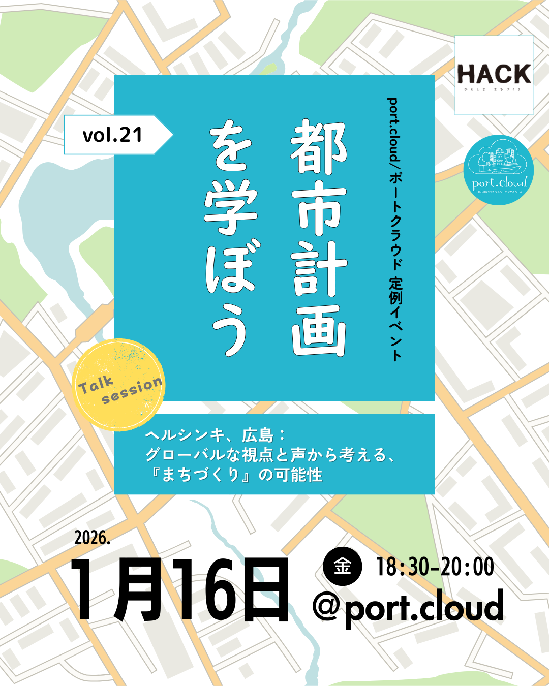 ★「都市計画を学ぼう」は、port.cloud×ひろしままちづくりHACKのオリジナルイベントです。
